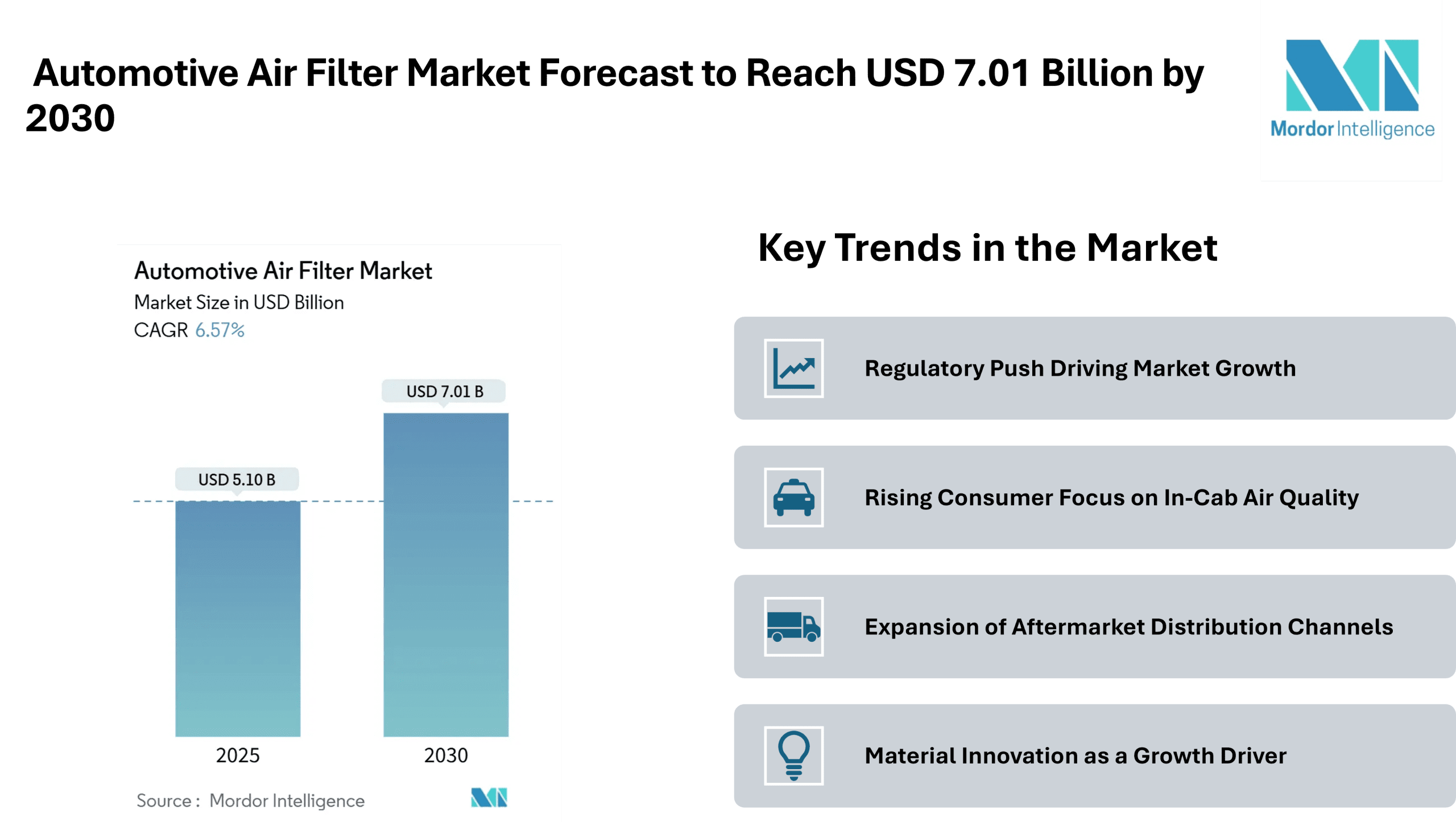 Automotive Air Filter Market Forecast to Reach USD 7.01 Billion by 2030, Driven by Filtration Efficiency and User Health Focus – Mordor Intelligence