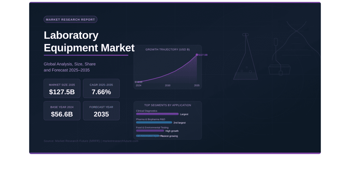 Pune, India — The global Laboratory Equipment Market is on a powerful and sustained expansion path, according to the latest Laboratory Equipment Market report published by Market Research Future (MRFR). Valued at USD 56.60 billion in 2024, the market is projected to grow from USD 60.94 billion in 2025 to USD 127.50 billion by 2035, representing a compound annual growth rate (CAGR) of 7.66% during the forecast period 2025 to 2035. This near-doubling of market value over a decade underscores the pivotal role of laboratory infrastructure in powering global scientific advancement — from drug discovery and clinical diagnostics to genomics, environmental monitoring, and food safety. Much like the Longevity Market size trajectory, where aging demographics are accelerating healthcare investment, the Laboratory Equipment Market is fueled by the convergence of population health urgency, scientific innovation, and increased global R&D commitment.