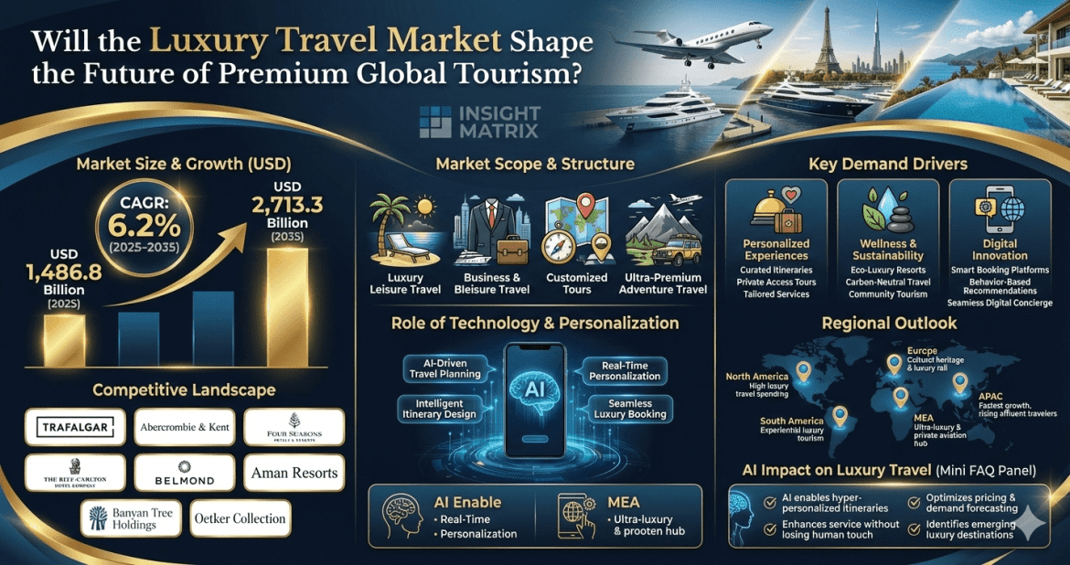Home Press ReleasesLuxury Travel Market to Reach USD 2713.3 Billion by 2035, Driven by Rising Demand for Personalized Experiences at a CAGR of 6.2%