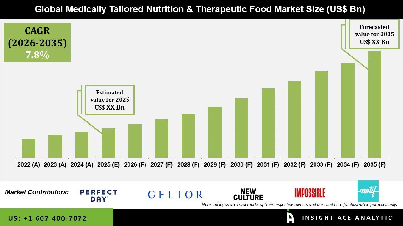 InsightAce Analytic Pvt. Ltd. announces the release of a market assessment report on theGlobal Medically Tailored Nutrition & Therapeutic Food Market Size, Share & Trends Analysis Report By Disease (Diabetes & Metabolic Disorders, Cancer Recovery & Oncology Support, Gut Health & Digestive Disorders, Cardiovascular Support, Immune Support & Critical Care, Renal & Organ-Specific Nutrition), By Product Type (RTD Medical Beverages, Powdered Clinical Nutrition Formulas, Enteral / Tube Feeding Formulas, Therapeutic Bars & Snacks, Fortified Staples for Patients), By Distribution Channel (Hospitals & Clinics (Institutional), Pharmacies & Drugstores, D2C / Online Healthcare Platforms, Specialty Medical Nutrition Stores, Grocery / Retail (Medical Nutrition Aisle)),-Market Outlook And Industry Analysis 2035″