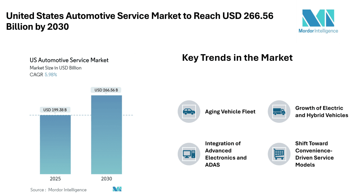 The average age of vehicles on U.S. roads continues to rise, increasing demand for regular maintenance, part replacements, and mechanical repairs as consumers hold onto cars longer instead of purchasing new ones.