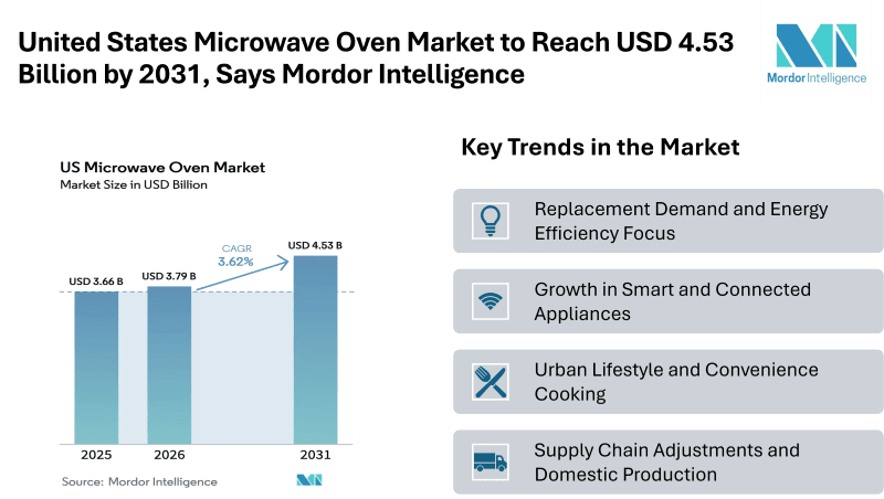 Home Press ReleasesUnited States Microwave Oven Market to Reach USD 4.53 Billion by 2031, Says Mordor Intelligence